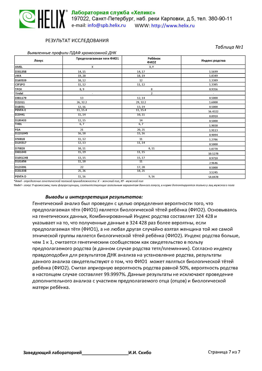 В зависимости от исследуемого вида родства и возможности предоставления образцов ДНК дополнительных родственников, при необходимости, исследуется до 33 маркеров ДНК.